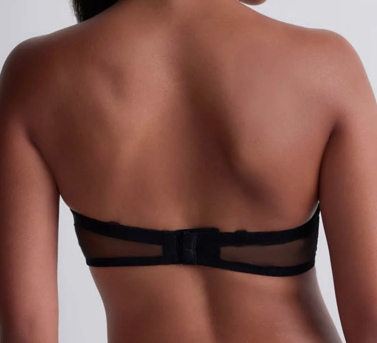 This sleek 'Sheer Emotion' Moulded Strapless/Bandeau Bra from Aubade in Black is crafted with soft fabric cups, together with a striking embroidered border beneath the bust.