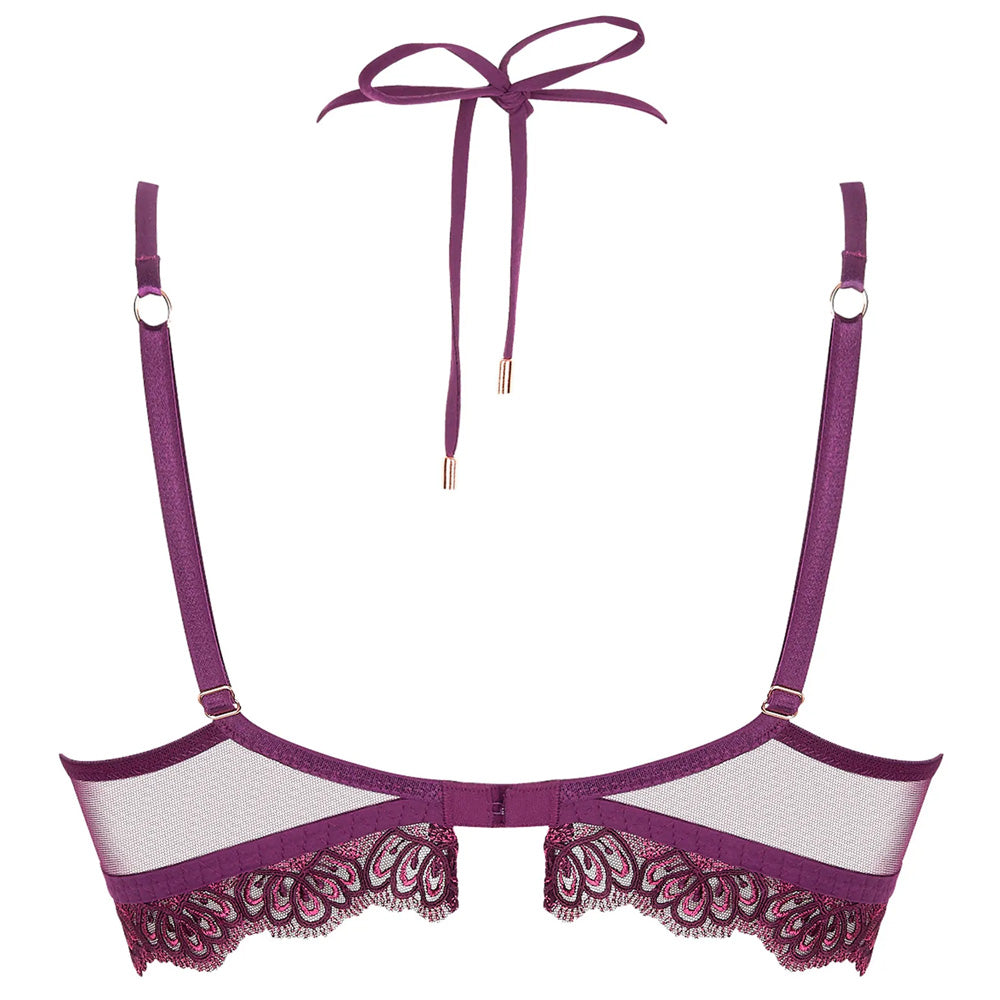 This lightly padded Contour Bra in Orchidée Artist (plum purple) from the 'Élégance Artist' ('Artistic Elegance') collection by Lise Charmel features a round bust shape together with sumptuous floral embroidery on tulle in shades of plum and pink.